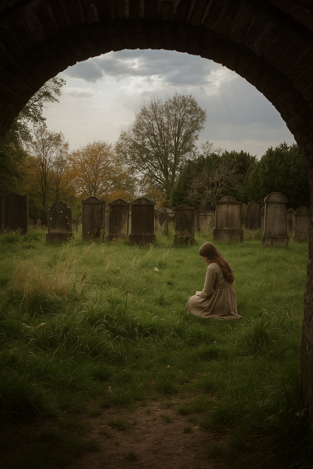 Haar ogen vonden een verweerde steen, half verzonken in de aarde. En plotseling leek het alsof de namen op de stenen oplichtten, één voor één. Namen die allang waren vervaagd, die niemand meer kende. Maar in dat moment spraken ze tot haar.